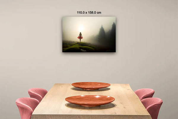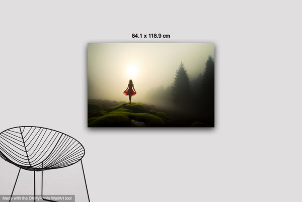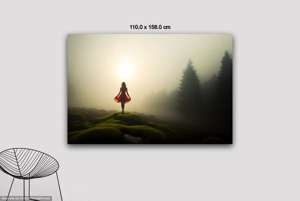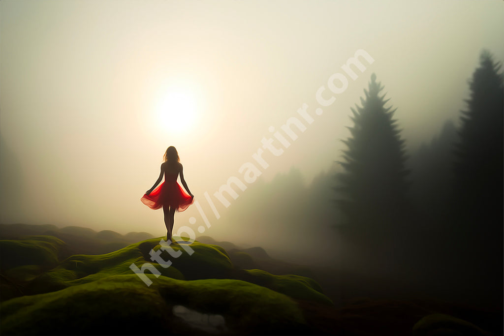 A solitary figure in a red dress disrupts the serene green moss, creating a visual symphony of color and simplicity. Capturing reality during travels, I later transform it at my desk through digital manipulation, a process that can span days or much longer.