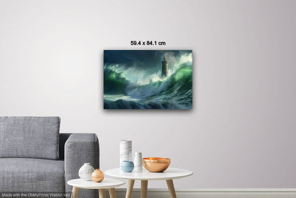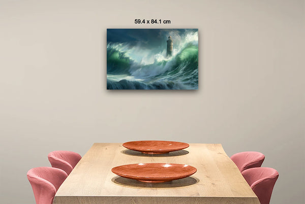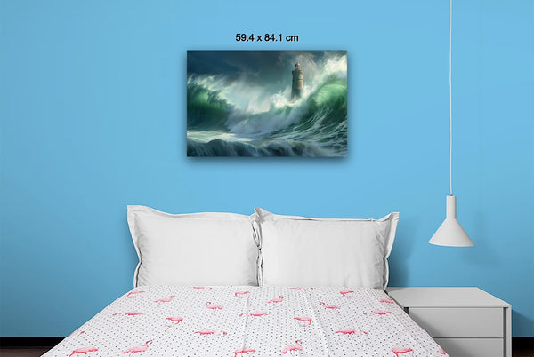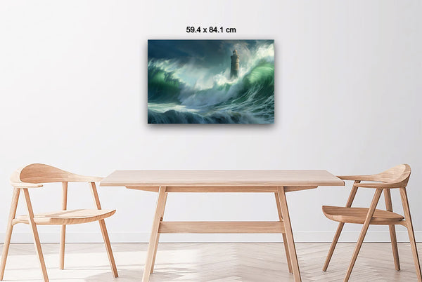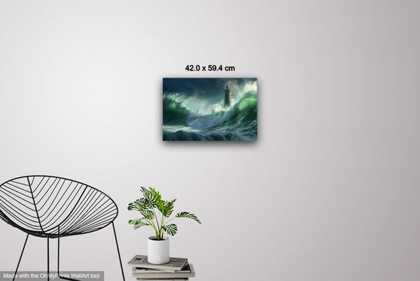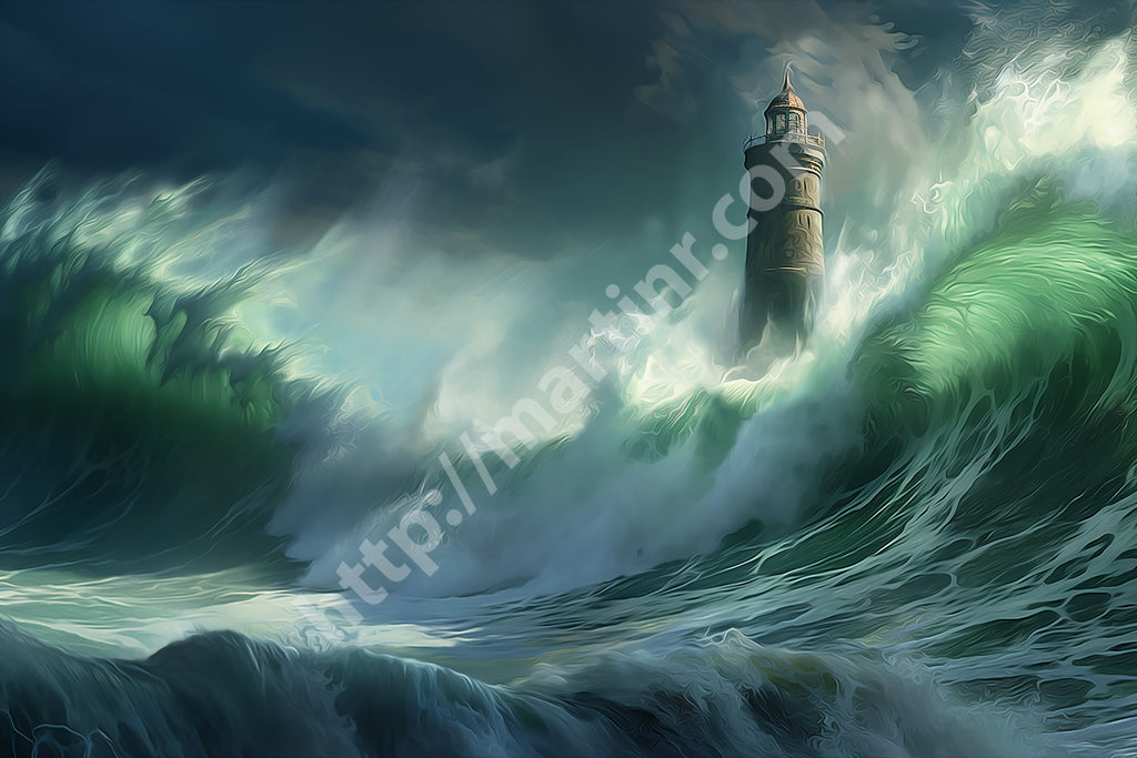 Amidst the swirling chaos of the ocean, the lighthouse shines as a symbol of hope and endurance against nature's fierce energy. By capturing the scene photographically and then manipulating the light digitally, the artwork mirrors the intense emotions of awe and resilience experienced during the shoot.