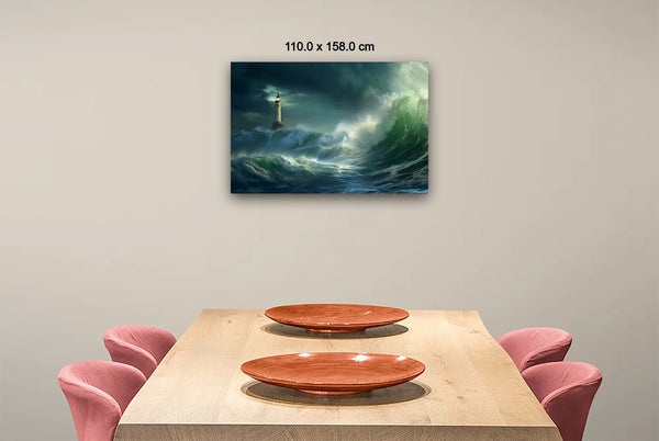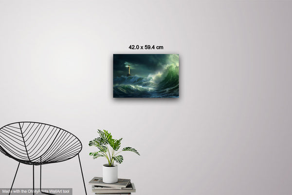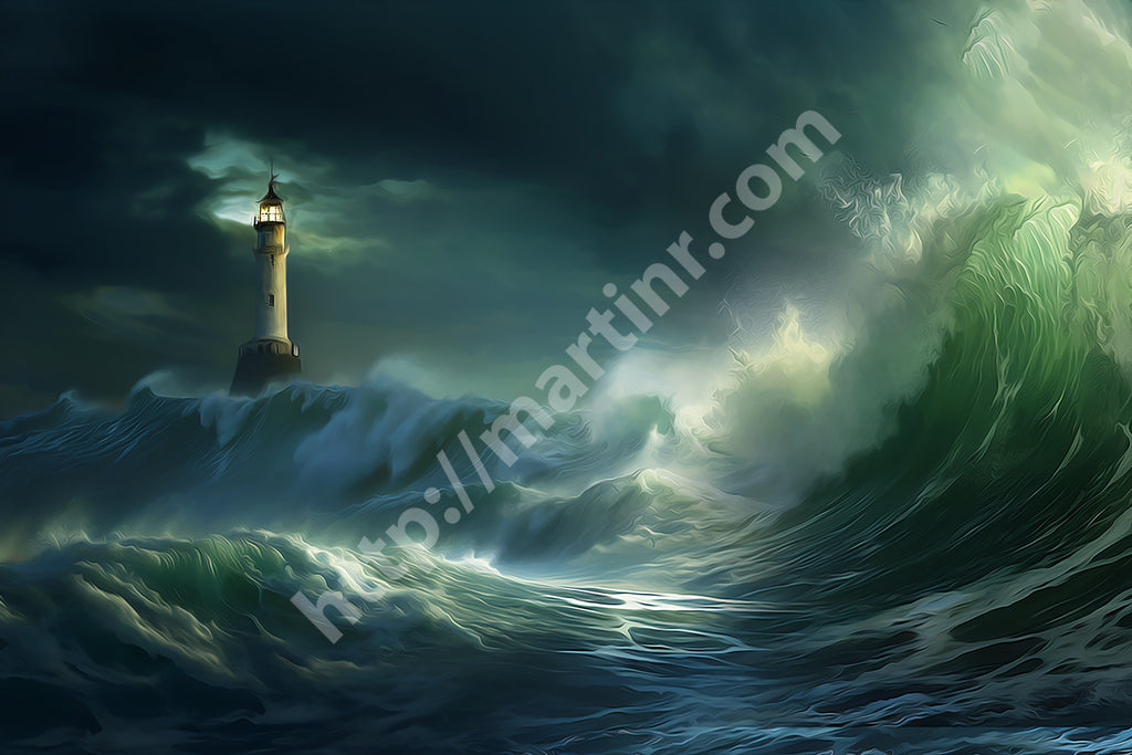 Surrounded by relentless, sparkling waves, the lighthouse remains steadfast, guiding seafarers through the stormy Cornish waters. The photograph, enhanced through digital manipulation, conveys the powerful connection between the natural world's turmoil and the photographer's inner resolve.