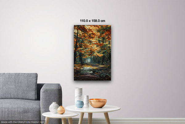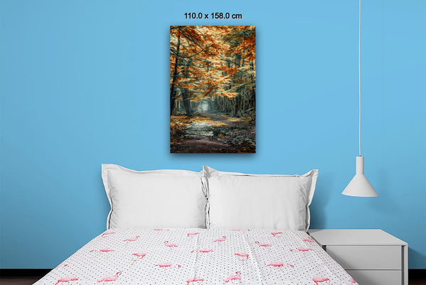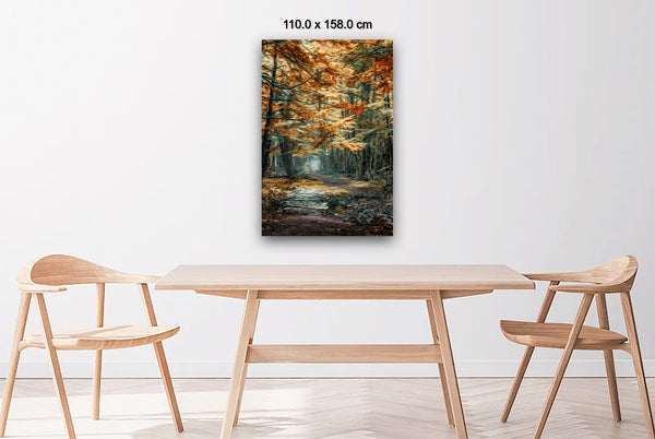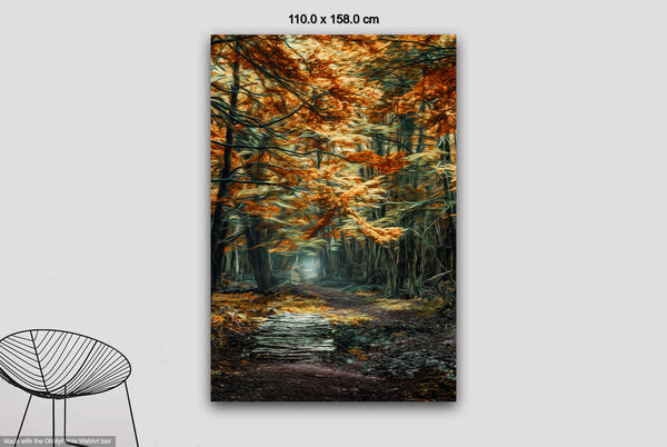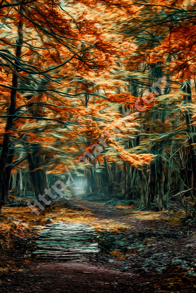 A peaceful autumn scene where a wooden bridge arches over a gentle stream, leading toward a path bathed in soft light. The golden hues of the season surround the bridge, creating an atmosphere of quiet reflection as the path draws you closer to the light at its end, offering a promise of tranquility.