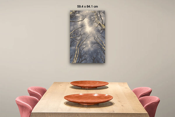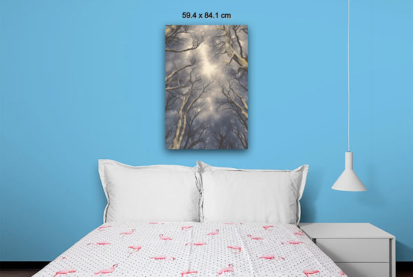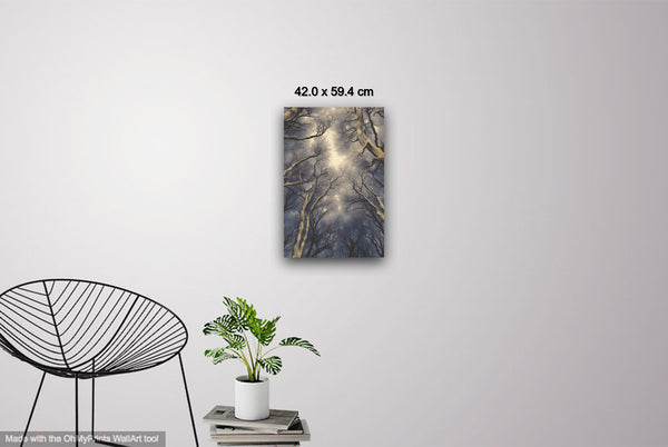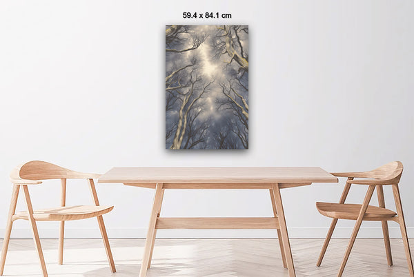 This mysterious scene captures the magical harmony of the tree crowns, their intricate spacing creating an almost otherworldly atmosphere. The natural "crowning" of each tree seems deliberate, as though woven into the fabric of the forest, evoking a sense of enchantment and unity.